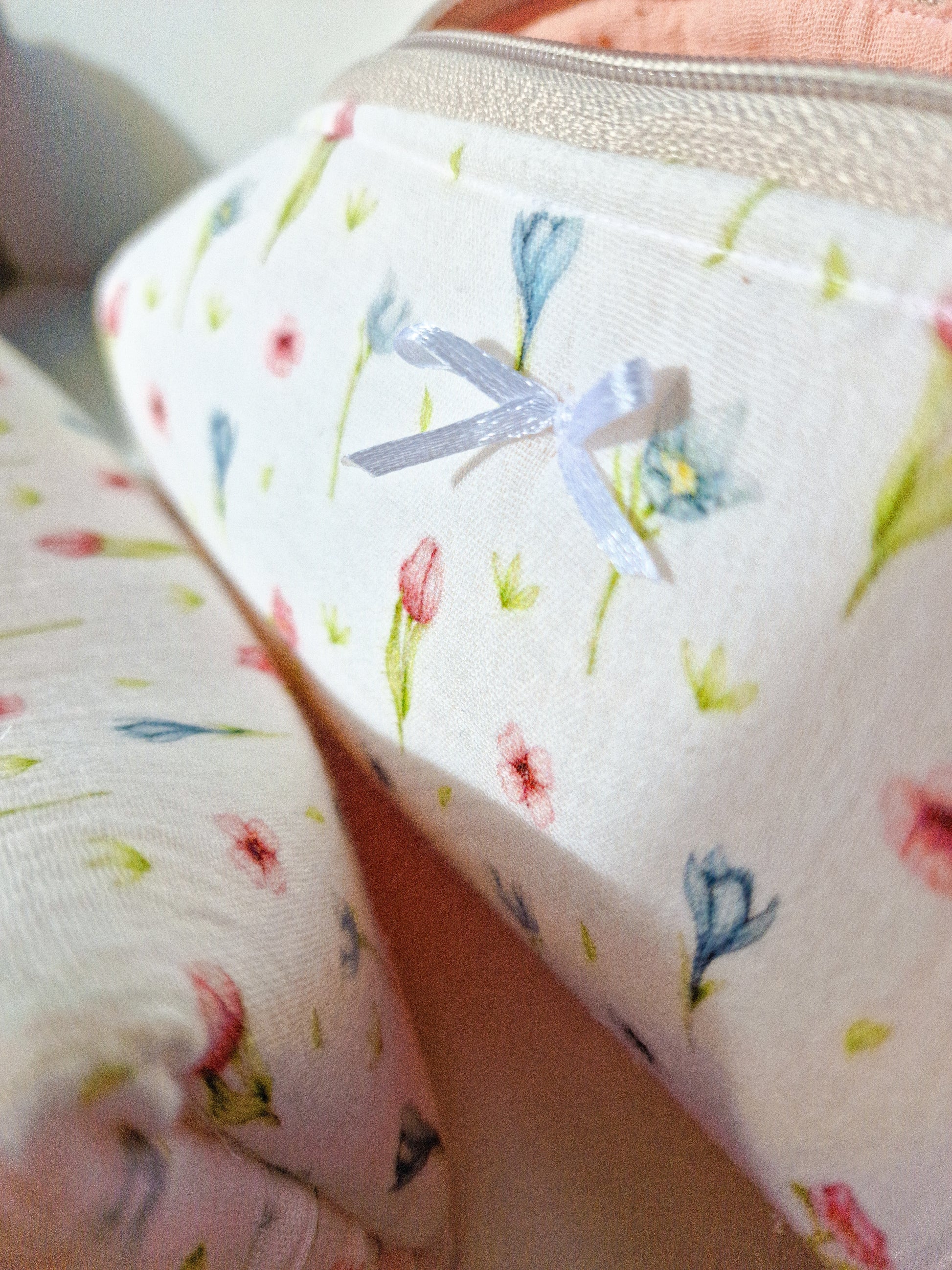 • Beautybag aus Musselin, innenfutter Rosa-Musselin, Reißverschluss in Beige