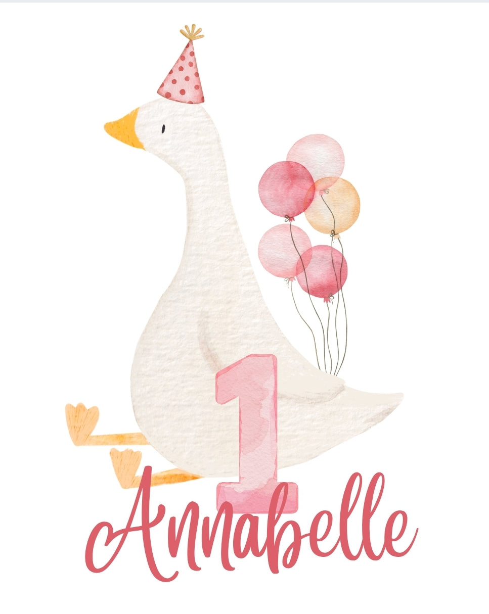Bügelbild Kundenwunsch "Gans erster Geburtstag"