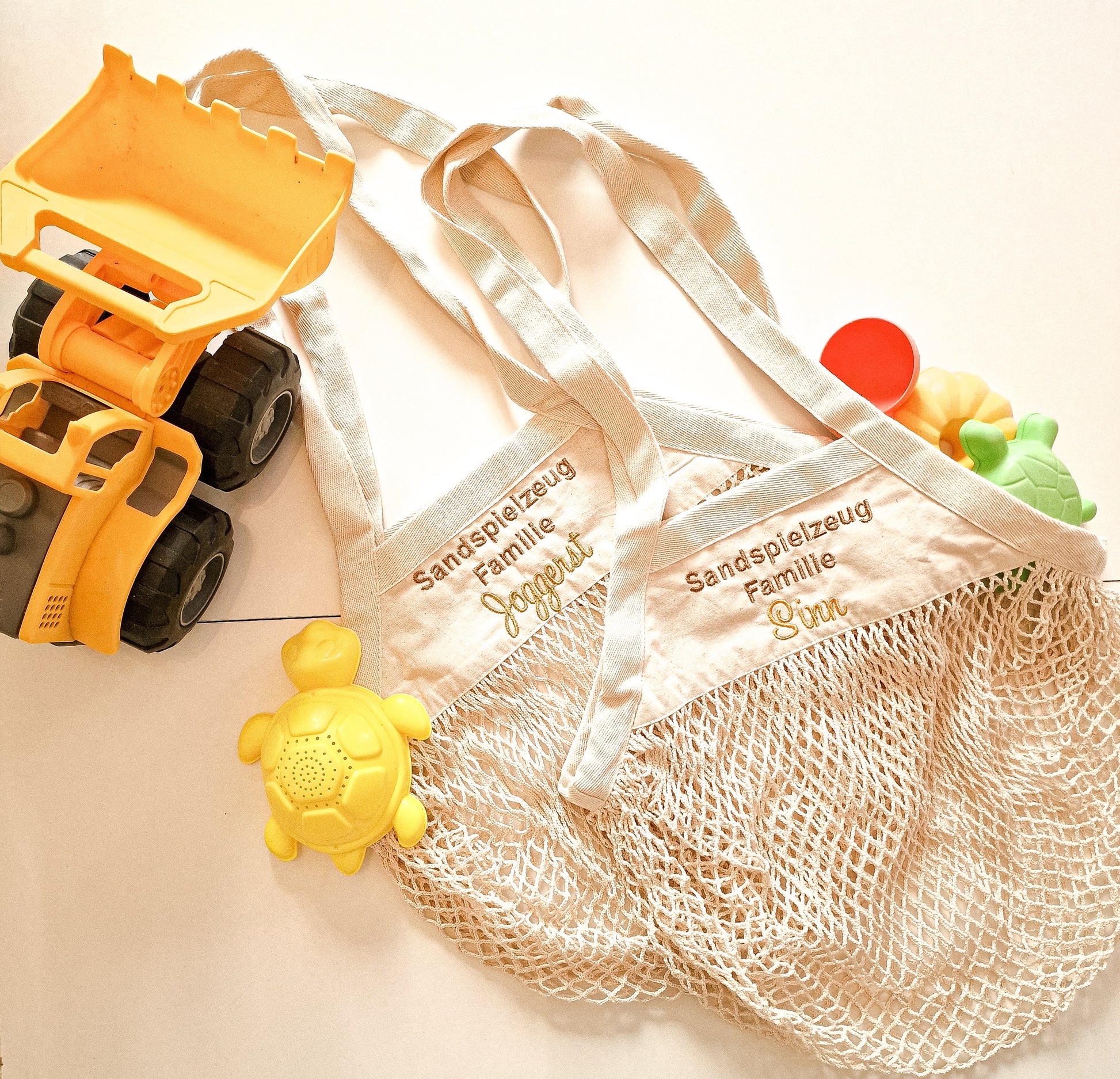 • Stylische Baumwolltasche für z.b. Sandspielzeug, perfekt um überschüssigen Sand einfach rauszuschütteln, der Sand fällt Mühelos durch die Löcher herraus.