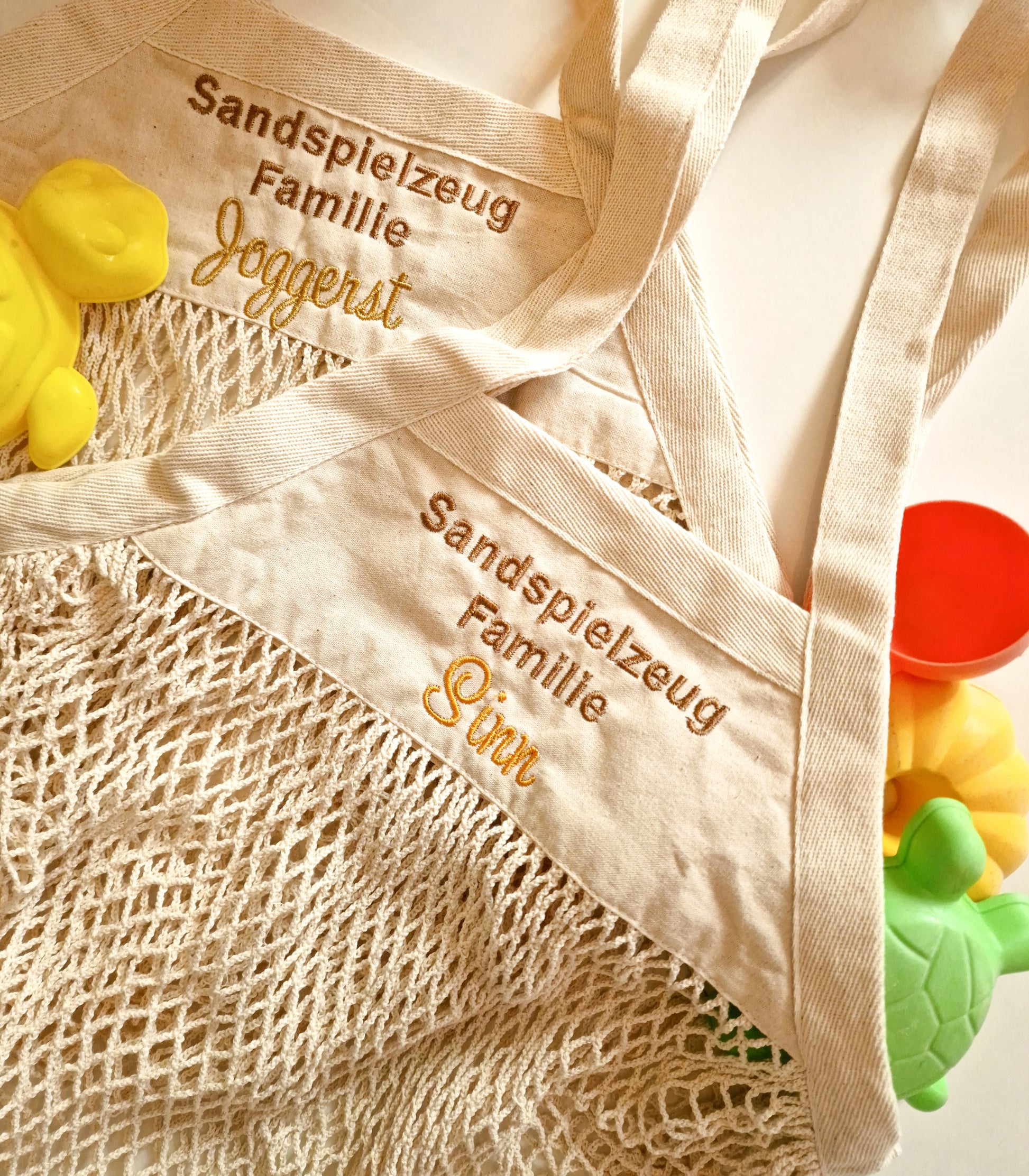 • Große Baumwolltasche für viel Platz zum mitnehmen von Sandspielzeug im Urlaub, auf dem Spielplatz etc.