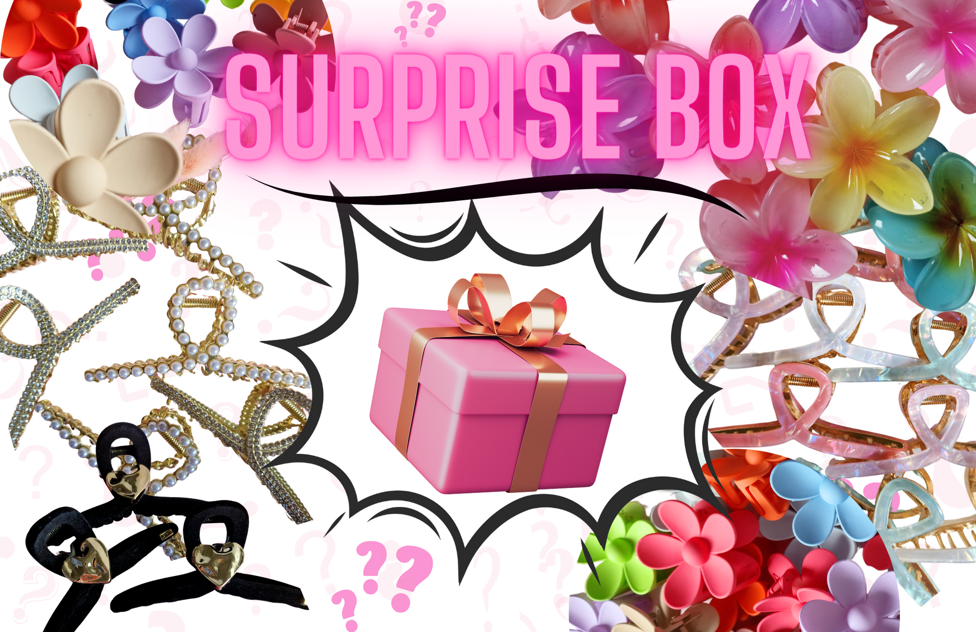 • Bestelle deine Überraschungbox und lass dich in Farbe & Form der Haarklammer überraschen